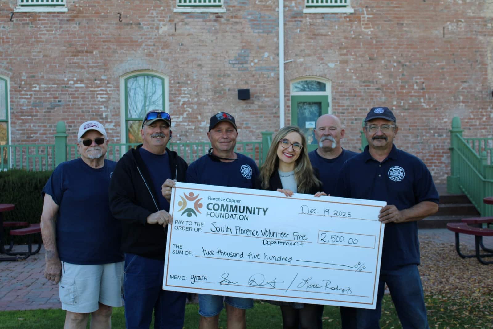 Florence Copper Community Foundation Awards $2,500 Grant to South Florence Volunteer Fire Department